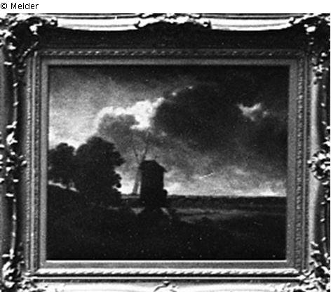 Flachlandschaft mit Windmühle bei heraufziehendem Gewitter