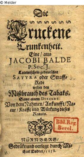 Suchmeldung | Einzelobjekt Die Truckene Trunckenheit Lost Art-ID218517 Vorherige Weiter Titelblatt Autor:in Balde, Jakob Verlag M. Endter TitelDie Truckene TrunckenheitErscheinungsortNürnberg Erscheinungsdatum1658ObjektartBuchObjektgruppeBibliotheksgutVeröffentlicht seit2001 Kontakt Stiftung Preußischer Kulturbesitz / Staatsbibliothek zu Berlin Unter den Linden 8 10117 Berlin Deutschland Tel+49 (0) 30 266 - 0Fax+49 (0) 30 266 331301 Homepagehttps://staatsbibliothek-berlin.de/ Ansprechpartner:in Olaf HamannPositionLeiter Osteuropa - AbteilungTel+49 (0)30 266 435600E-Mailolaf.hamann@sbb.spk-berlin.de