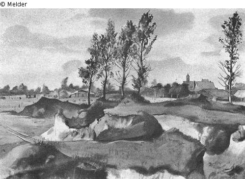Ausstellung eines Aquarells "Grebelinie bei de Klomp (Holland)" auf Soldat und Künstler Dresden 1943; Auslagerung 30.12.1943 nach Schloss Schmölln bei Bischofswerda; Verbleib unbekannt.