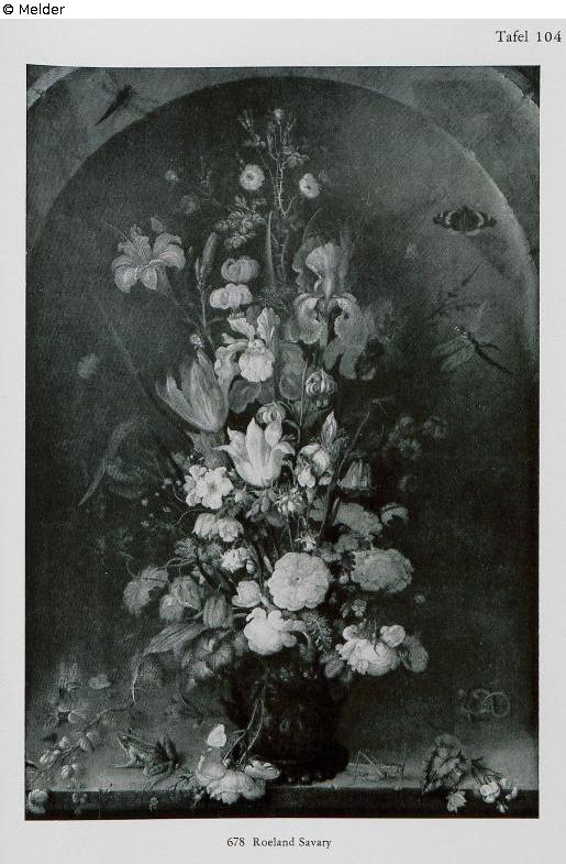 vor einer rundbogigen Steinnische, belebt von zahlreichen Insekten; bez. R. Savery 1617