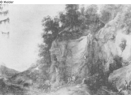Tafelmalerei: Bild: Jagen; die Jagd & Ziege & Felsen; jagen; Berufe & Ziege; Schaffell & Fels(en)