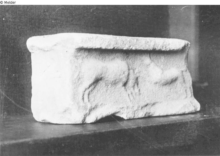 Vorderseite. Zwei Panther (?), ein Kalb (?) zerfleischend. Rückseite: Schreitender Eber. Rechts: Nach links springender Hund.