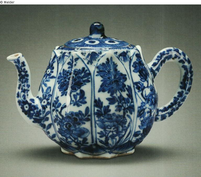 Keramik (Porzellan) ; Unterglasurfarbe kobaltblau / Emaillemalerei