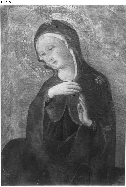 Suchmeldung | Einzelobjekt Maria von einer Verkündigung Lost Art-ID139314 Vorherige Weiter Hersteller/Künstler:in Unbekannt (Sienesischer Meister) TitelMaria von einer Verkündigung Datierung1401/1500ObjektartMalereiObjektgruppeMalereiMaterial / TechnikHolz / gemalt Höhe 42,00 cm Breite 29,00 cm Inventarnummer477Veröffentlicht seit2001 Kontakt Suermondt-Ludwig-Museum Aachen Wilhelmstraße 18 52070 Aachen Deutschland Tel+49 (0) 241 47980 0Fax+49 (0) 241 37075E-Mailinfo@suermondt-ludwig-museum.deHomepagehttp://www.suermondt-ludwig-museum.de/ Ansprechpartner:in Till-Holger BorchertPositionDirektorTel+49 (0) 241 47980 10E-MailTill-Holger.Borchert@mail.aachen.de Ansprechpartner:in Michael RiefPositionstellv. LeiterTel+49 (0) 241 47980 15E-MailMichael.Rief@mail.aachen.de