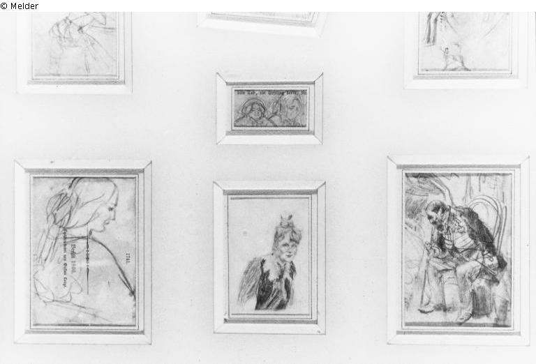 Sieben kleine Bleistiftskizzen. Gerahmt mit Passepartout unter Glas. In Beschreibung von 2005 gebräunt und fleckig. Wohl noch im alten Rahmen.