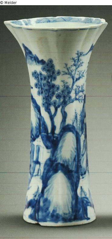 Keramik (Porzellan) ; Unterglasurfarbe kobaltblau / Emaillemalerei