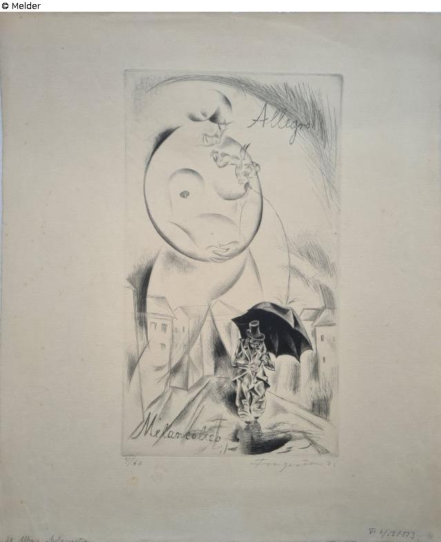 Recto: lower left in pencil "4/60", "38, Allegro Melancolico", lower right in pencil signature "Fingesten 22", inv. no. "VI b/52/513"; verso: upper left in pencil "S 27", lower left in pencil "52711/fz[?]", lower right in pencil "47/2256", stamp in blue "Städt. Museum Zeitz"