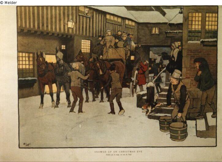 Ankunft einer Kutsche am Weihnachtsabend ("Snowed up on Christmas Eve")