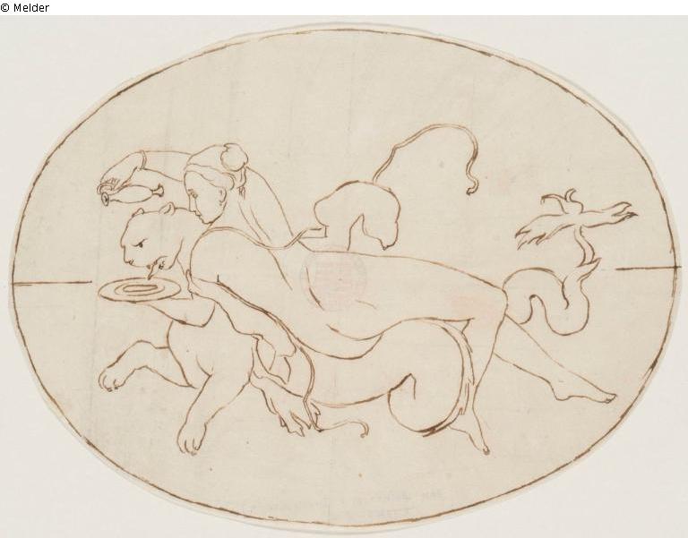 Found-Object Report | Object report Ariadne gives water to the panther-like animal Lost Art-ID616322 Previous Next Artist / Creator Dannecker, Johann Heinrich von Birth 1758.10.15, Stuttgart Death 1841.12.08, Stuttgart Place of activityStuttgart TitleAriadne gives water to the panther-like animal Dating1773/1841Object typeDrawingGroup of reported objectsGraphicMaterial / TechniqueInk black ; Paper / drawn (pen-and-ink drawing) Height 15.30 cm Width 20.50 cm Inventory numberC 1944-415Description Oval depiction of a naked woman giving water to a panther. Read more Read less Provenance unknown origin, probably acquired for the "Sonderauftrag Linz" Read more Read less Published since27.11.2023 Contact Staatliche Kunstsammlungen Dresden Kupferstich-Kabinett Taschenberg 2 01067 Dresden Germany Phone(0351) 4914 3210E-Mailkk@skd.museumHomepagehttps://www.skd.museum Contact DirektionPhone(0351) 4914 3210E-Mailkk@skd.museum