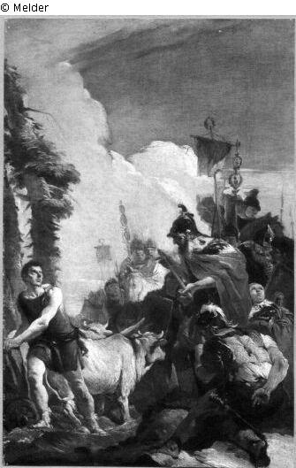 Found-Object Report | Object report Cincinnatus being appointed dictator in 458 BC whi Lost Art-ID220595 Previous Next Artist / Creator Tiepolo, Giovanni Battista Birth 1696.03.05, Venedig Death 1770.03.27, Madrid Place of activityVenedig; Udine; Mailand; Bergamo; Würzburg; Madrid TitleCincinnatus being appointed dictator in 458 BC whiObject typePaintingGroup of reported objectsPaintingMaterial / TechniqueOil ; Canvas / painted Height 58.50 cm Width 38.50 cm Inventory numbermü8421Description Links Cincinnatus, Kopf nach halbrechts, neben ihm Kühe. Rechts römische Krieger. Read more Read less Holding Kulturgüter aus dem ehemaligen ReichsvermögenProvenance Access 1944 Read more Read less Published since2001 Contact Kunstverwaltung des Bundes Herbert-Bayer-Straße 5 13086 Berlin Germany E-Mailprovenienzforschung@kvdb.bund.deHomepagehttp://www.kunstverwaltung.bund.de