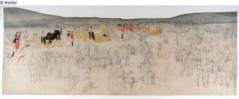 Found-Object Report | Object report Court sleigh ride, in the background a castle Lost Art-ID601683 Previous Next Artist / Creator Reinhold, Friedrich Philipp Birth 1779.01.08, Gera Death 1840.04.22, Wien Place of activityPrag, Leipzig TitleCourt sleigh ride, in the background a castle Dating1794/1840Object typeDrawingGroup of reported objectsGraphicMaterial / TechniqueInk ; Paper / drawn (pen-and-ink drawing) ; watercoloured Height 25.10 cm Width 67.80 cm Inventory numberC 1944-331Holding Erwerbungen für das sogenannte Führermuseum in LinzProvenance Art antiquary C. G. Boerner, Leipzig; 15. May 1944 acquired for the "Sonderauftrag Linz" Read more Read less Published since05.09.2022 Contact Staatliche Kunstsammlungen Dresden Kupferstich-Kabinett Taschenberg 2 01067 Dresden Germany Phone(0351) 4914 3210E-Mailkk@skd.museumHomepagehttps://www.skd.museum Contact DirektionPhone(0351) 4914 3210E-Mailkk@skd.museum