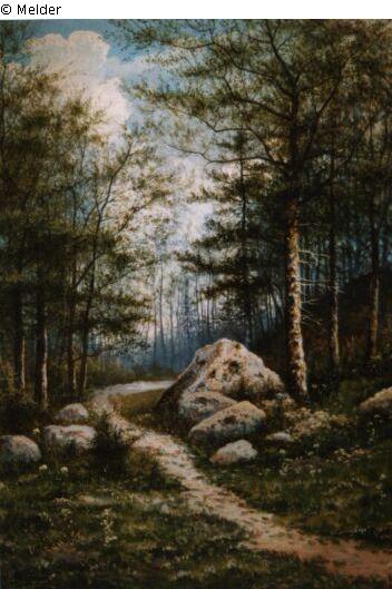 Forest way with large stones