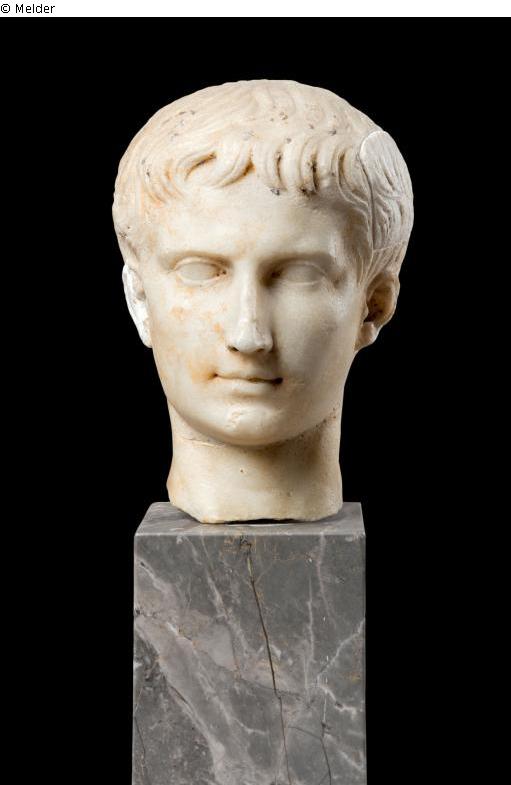 Transparent at the nose; broken under the chin; tip of the nose, shell of the right ear and patches in the hair next to the left temple completed; head of a statue or bust below life-size; style is the smooth, cool classicism of the time of Tiberius, but the formation of the hair refers to even later times, such as that of the Emperor Claudius.