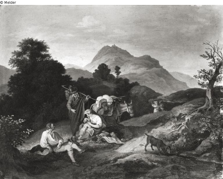 Italian landscape with resting wanderers (latching end people in the mountains)