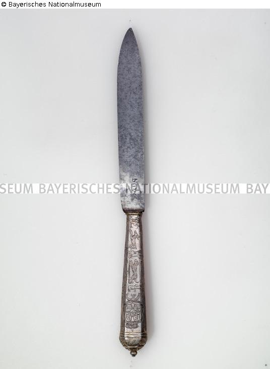Knife, handle with hunting scenes and Danish royal coat of arms