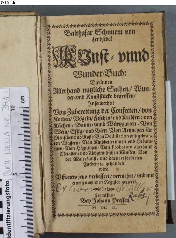on pastedown lable Karl von der Porten-Hannover | Kunst-Versteigerer-Händler, with handwritten entry in pencil and ink on the lable: 10 38 II / 60[8?]; on half-titel in brown: ex libris Matth[..]j [?] Rashij [?]