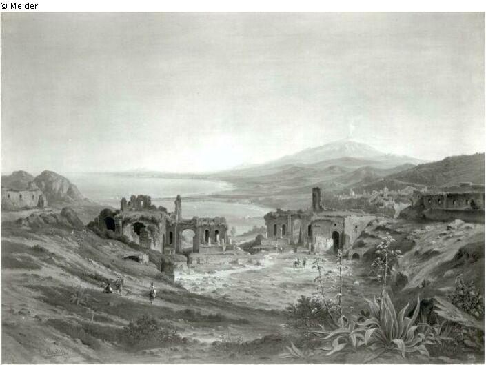 Found-Object Report | Object report Landscape with ruins near Taormina Lost Art-ID218891 Previous Next Artist / Creator Castell, Johann Anton Birth 1810.06.03, Dresden Death 1867.07, Dresden Place of activityDresden TitleLandscape with ruins near Taormina Dating1860/1861Object typePaintingGroup of reported objectsPaintingMaterial / TechniqueOil ; Canvas / painted Height 81.00 cm Width 111.00 cm Inventory numbermü10778Description Signatur: A Castell 1860-61;Goldrahmen im Stil der Zeit sehr gut erhalten. Read more Read less Holding Kulturgüter aus dem ehemaligen ReichsvermögenPublished since2001 Contact Kunstverwaltung des Bundes Herbert-Bayer-Straße 5 13086 Berlin Germany E-Mailprovenienzforschung@kvdb.bund.deHomepagehttp://www.kunstverwaltung.bund.de