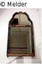 Spiegel "in venezianischer Art". Der Spiegel besteht aus zwei Teilen: Einem Viereckigem Unterteil mit einem einfachen Rahmen und einem halbovalen Oberteil mit geschwungenem Rahmen. Der Rahmen bestand ursprünglich auch aus Spiegelglas, das aber nicht mehr vorhanden ist.