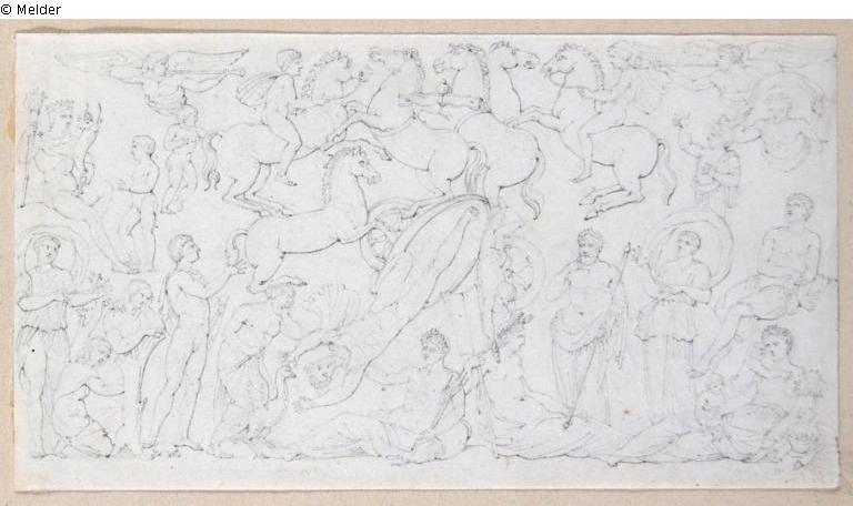 A graphic drawing with mythological figures.