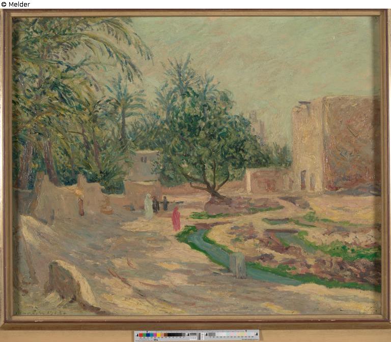 Found-Object Report | Object report Oasis of Biskra Lost Art-ID580717 Previous Next Artist / Creator Maufra, Maxime Birth 1861.05.17, Nantes (Loire-Atlantique) Death 1918.05.23, Poncé (Sarthe) Place of activityParis; Pont-Aven; Le Pouldu; Bretagne; Kerhostin TitleOasis of Biskra Dating1913Object typePaintingGroup of reported objectsPaintingMaterial / TechniqueOil ; Canvas / painted Height 60.40 cm Width 74.00 cm Description bottom right: Maufra 1913 Read more Read less Provenance Purchase by the city of Gelsenkirchen 1958 at the gallery Aenne Abels Read more Read less Published since20.12.2018 Contact Kunstmuseum Gelsenkirchen Horster Str. 5-7 45897 Gelsenkirchen Germany Phone+49 (209) 169-4361Fax+49 (209) 169-4801E-Mailkunstmuseum@gelsenkirchen.de