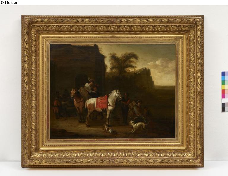 Rest at the inn, horses at the watering hole, or return from the hunt