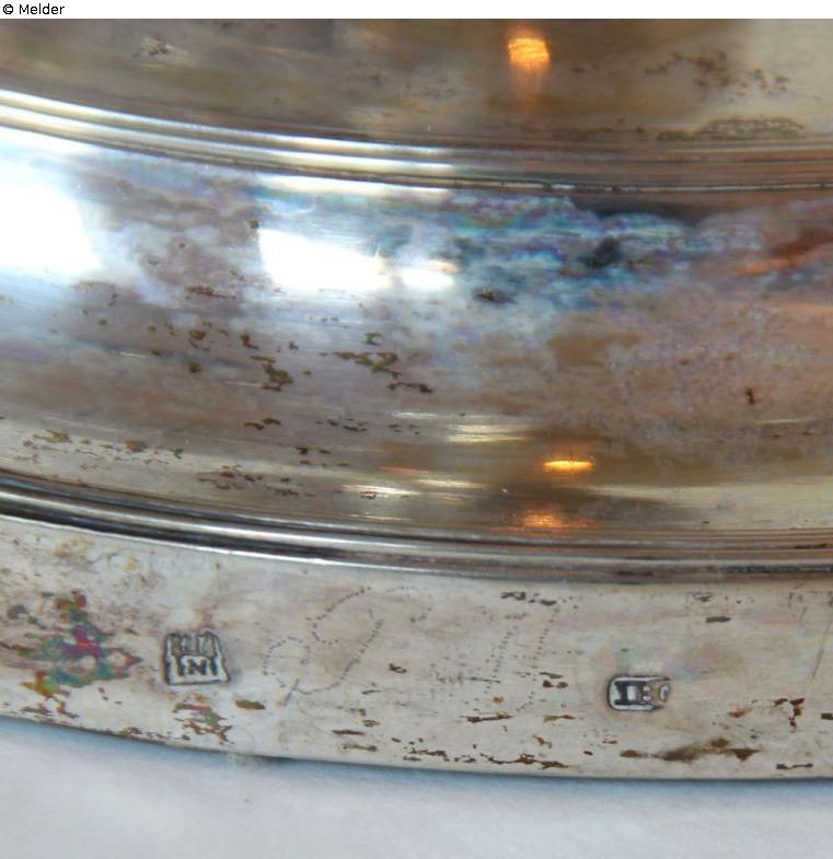 under the centre of the insert: ‘N:3’ (improved from ‘6’) (dotted), also on the foot: Hamburg hallmark and master's mark of Johann Hues (IH in a rectangle).