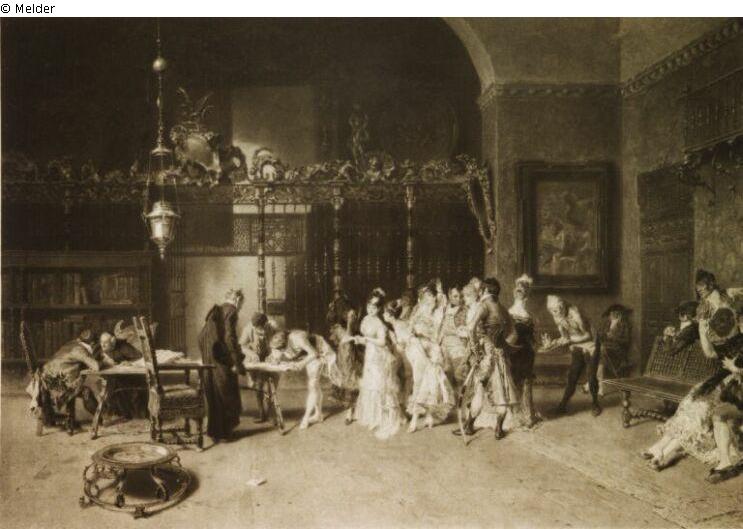 Found-Object Report | Object report "Un marriage espagnole", nach Fortuny Lost Art-ID237674 Previous Next Artist / Creator Girardet, Edouard (Nach dem Gemälde von Mariàno Fortuny) Birth 1819.07.30, Le Locle Death 1880.03.05, Versailles Place of activityGirardet, Edouard-Henri Title"Un marriage espagnole", nach FortunyObject typePrintGroup of reported objectsGraphicMaterial / Techniqueprinted (aquatint) Height 69.00 cm Width 90.00 cm Inventory number38431Published since2001 Contact Stadt Passau Kulturamt 94032 Passau Germany Phone(0851) 3960Fax(0851) 396438E-Mailstadtinfo@passau.deHomepagehttps://www.oberhausmuseum.de/