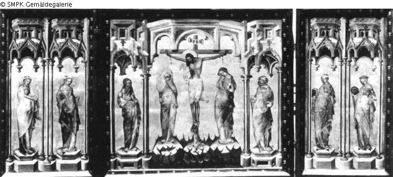 Altar with crucified Christ, Saints (Virgines Capitales) and holy martyrs