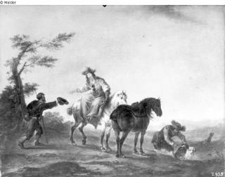 The painting is a inverted copy after a painting by Philips Wouwerman. Signed bottom half left. A. Querfurt. pinx.