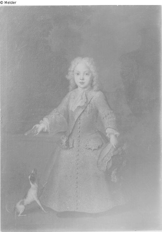 Rückseits: Le Sérce me Prince Frideric Fils du Prince Royal de Pologne et Electoral de Saxe est né le 5. Septembre 1723 peint à Dresden au mois Nov re(hochgestellt) 1726.