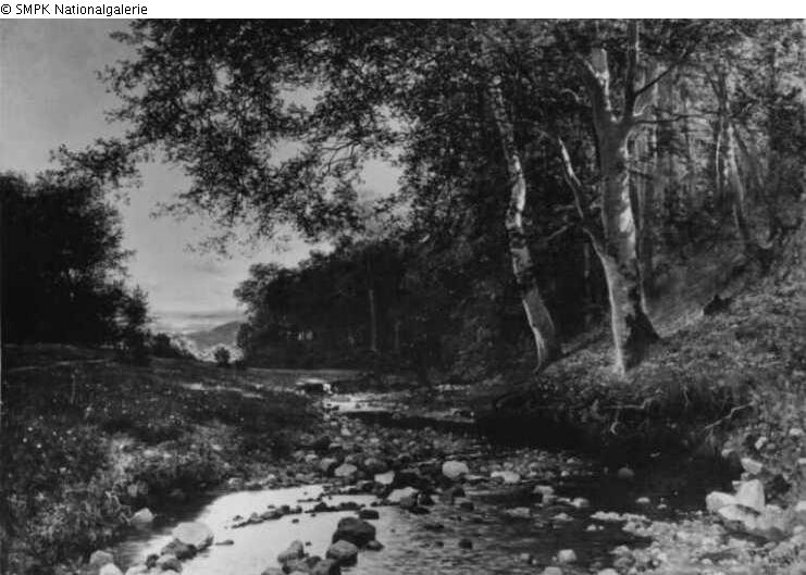 Panel painting: Depiction: Forest & brook