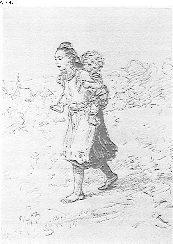 Girls from the Schwalm, her little sister on her back wearing