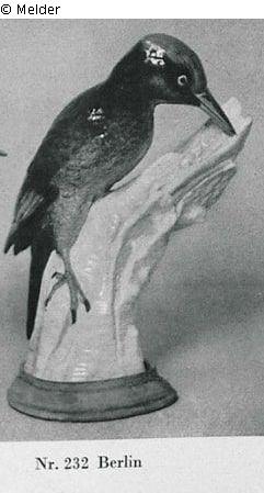 Blue-black plumage predominates, grey-brown at the sides. Turquoise blue spot on the back. Head bright red and light blue at the eyes. Berlin. Blue sceptre. Impeccable preservation