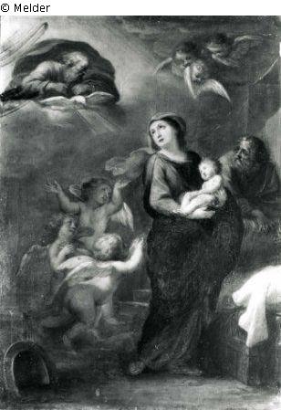 Mary with the child, God the Father and angels in the clouds