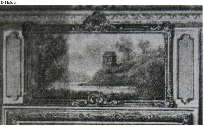 When the room was used as the study of King Johann (* 12.12.1801; † 29.10.1873, King from 1854), overdoor paintings by Thiele are documented in the room; Listed in inventory no. 1 of 31.01. 1920 as part of the settlement agreement between the Free State of Saxony and the former royal house of 1924, which were assigned to the state; In the specifications for salvage, Prof. Fichtner's report to the Reich governor on 27 December 1943 stipulates under point 6 the removal of the overdoors. The overdoors were removed to the relocation site at Zottewitz Castle near Priestewitz. According to the files, loss at the relocation site.