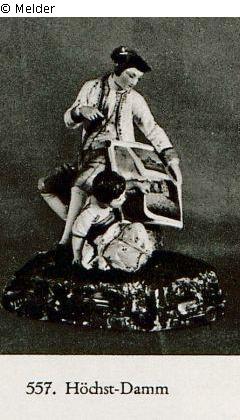 Hahn: Group. Young man with tricorn hat showing a pack of pictures to a little girl sitting at his feet. Excellent condition. Blue wheel mark u. D.