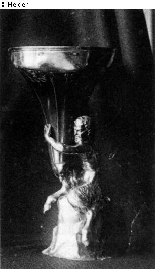 According to the 1858 inventory, the cup was given to the Kunstkabinett in 1836 by duke Ernest I of Saxe-Coburg-Gotha. Lost at Schloss Friedenstein in 1945, the beaker came into the possession of the Erfurt antiques dealer Kurt Müller in 1948, whose heirs had the important piece auctioned off by Nagel in Stuttgart in 2006. After the Foundation Schloss Friedenstein intervened, the goblet was confiscated by the public prosecutor's office. This was followed by a lengthy investigation, the result of which was that, although the theft and sale of the piece were illegal, neither the last owners nor the Nagel auction house could be proven to have acted with intent to receive stolen goods. Reacquired from art trade in 2007 with the support of the Ernst von Siemens Art Foundation and the Rudolf August Oetker Foundation Bielefeld.