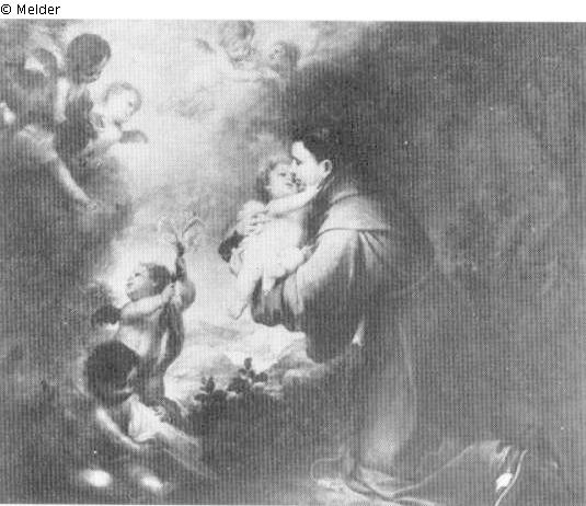 Panel painting: Depiction: the Christ child appears to St. Anthony of Padua, he embraces it or pays homage to it; Christ child; embrace; adore