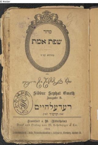 restituted Found-Object Report Siddûr śĕfāt ĕmet Editor Heidenheim, Wolf Object type Book Lost Art-ID612453