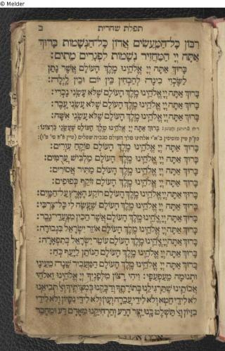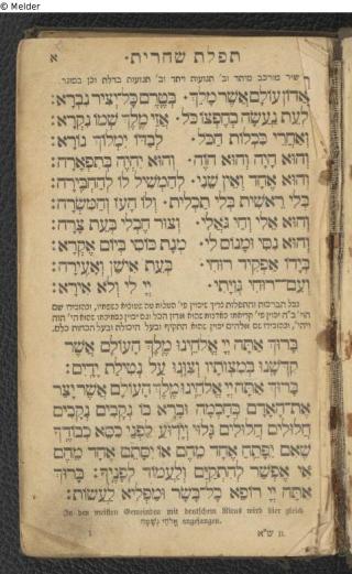 restituted Found-Object Report Sefer ḳerovot ; 5ספר קרובות ; 5. Maḥzor le-hag ha-Shavuʿot : meduyak, heṭev u-mevoʾar yafeh u-meturgam Ashkenazitמחזור לחג השבעות : מדויק, היטיב ומבואר יפה ומתורגם אשכנזית Editor Heidenheim, Wolf Publisher bi-defus u-ve-hotsaʾat ha-mevoʾar ṿe-ha-metargem / בדפוס ובהוצאת המבאר והמתרגם / verlegt und gedruckt in der privilegirten Buchdruckerey von W. Heidenheim Object type Library objects Lost Art-ID575948