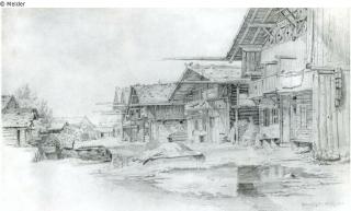 Found-Object Report Houses on a village street Artist / Creator Heinzmann, Carl Friedrich Object type Drawing Material / TechniquePencil / drawnLost Art-ID219361