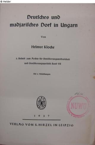 Found-Object Report Deutsches und madjarisches Dorf in Ungarn Author Helmut Klocke Publisher Hirzel Object type Book Lost Art-ID623452