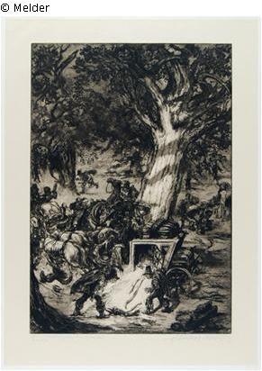 Found-Object Report The attack on the Stagecoach Artist / Creator Kolb, Alois Object type Print Material / TechniquePaper / printed (etching)Lost Art-ID429453