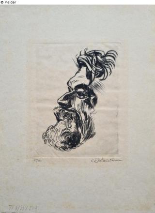 Found-Object Report Male head Artist / Creator Meidner, Ludwig Object type Print Material / TechniquePaper / printed (etching)Lost Art-ID429424