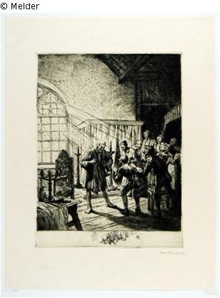 Found-Object Report Eight farmers in front of the lords Artist / Creator Schultheiß, Karl Max Object type Print Material / TechniquePaper / printed (etching)Lost Art-ID429483