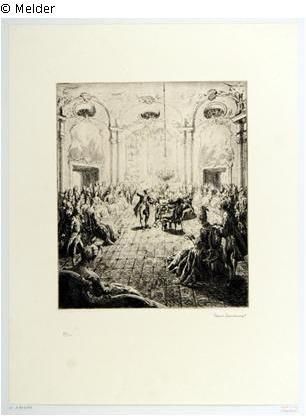 Found-Object Report Chamber music in the ballroom of a castle Artist / Creator Schultheiß, Karl Max Object type Print Material / TechniquePaper / printed (etching)Lost Art-ID429486