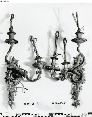 Search Request 2 two-armed sconces Artist / Creator Unknown (possibly French or German) Object type Light / lamp Material / TechniqueMetal (Brass) / fire-gilded ; electrified [afterwards]Lost Art-ID628740