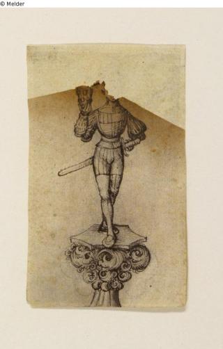 Found-Object Report Stehender Jüngling auf gotischem Kapitell Artist / Creator Schongauer, Martin (Nachahmer) Object type Drawing Material / TechniquePaper / drawn (pen-and-ink drawing)Lost Art-ID421721