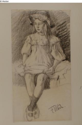 Found-Object Report Sitting Little Girl with Hat Artist / Creator Uhde, Fritz von Object type Drawing Material / TechniquePaper ; Chalk / drawnLost Art-ID421723