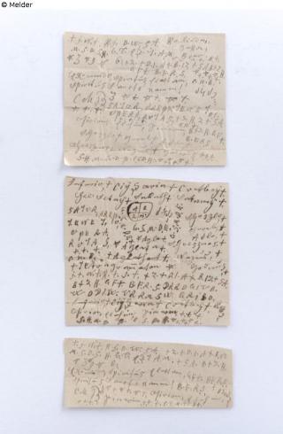 Found-Object Report Three so-called witch letters (anti-inflammatory, recorded incantations) Object type Drawing Material / TechniquePaper ; InkLost Art-ID578084